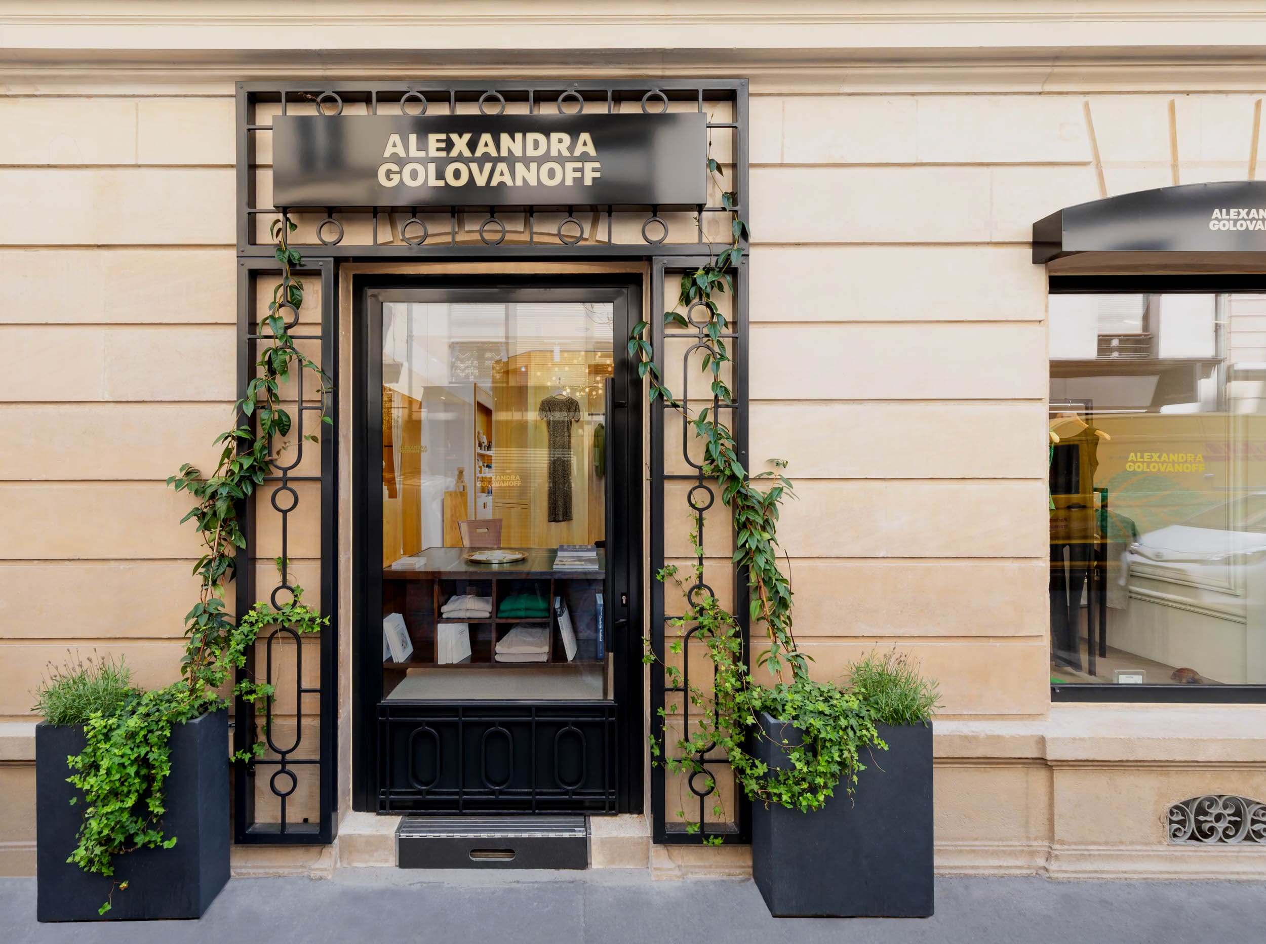 Une identité visuelle et graphique complète : en parallèle de l’architecture, BRIO a conçu la nouvelle identité visuelle et graphique de la maison. De la création du logo et des ses déclinaisons à l’ensemble des applications la nouvelle charte graphique incarne l’élégance contemporaine et l’esprit singulier d’Alexandra Golovanoff Paris. Un monogramme inédit incarne particulièrement cette histoire de famille : un "A" stylisé, évoquant la tour Eiffel, s’inscrit dans un "G" partiel, clin d’œil discret aux origines slaves des deux sœurs. À l’image d’une matriochka, ce signe graphique associe héritage et modernité, prolongeant dans l’univers visuel l’exigence de cohérence du concept architectural.