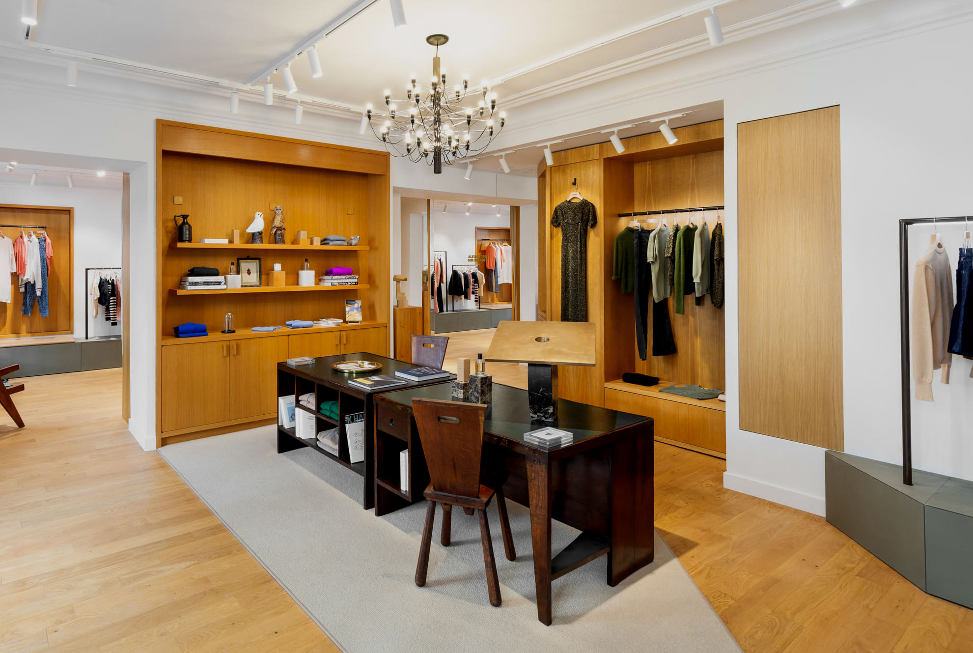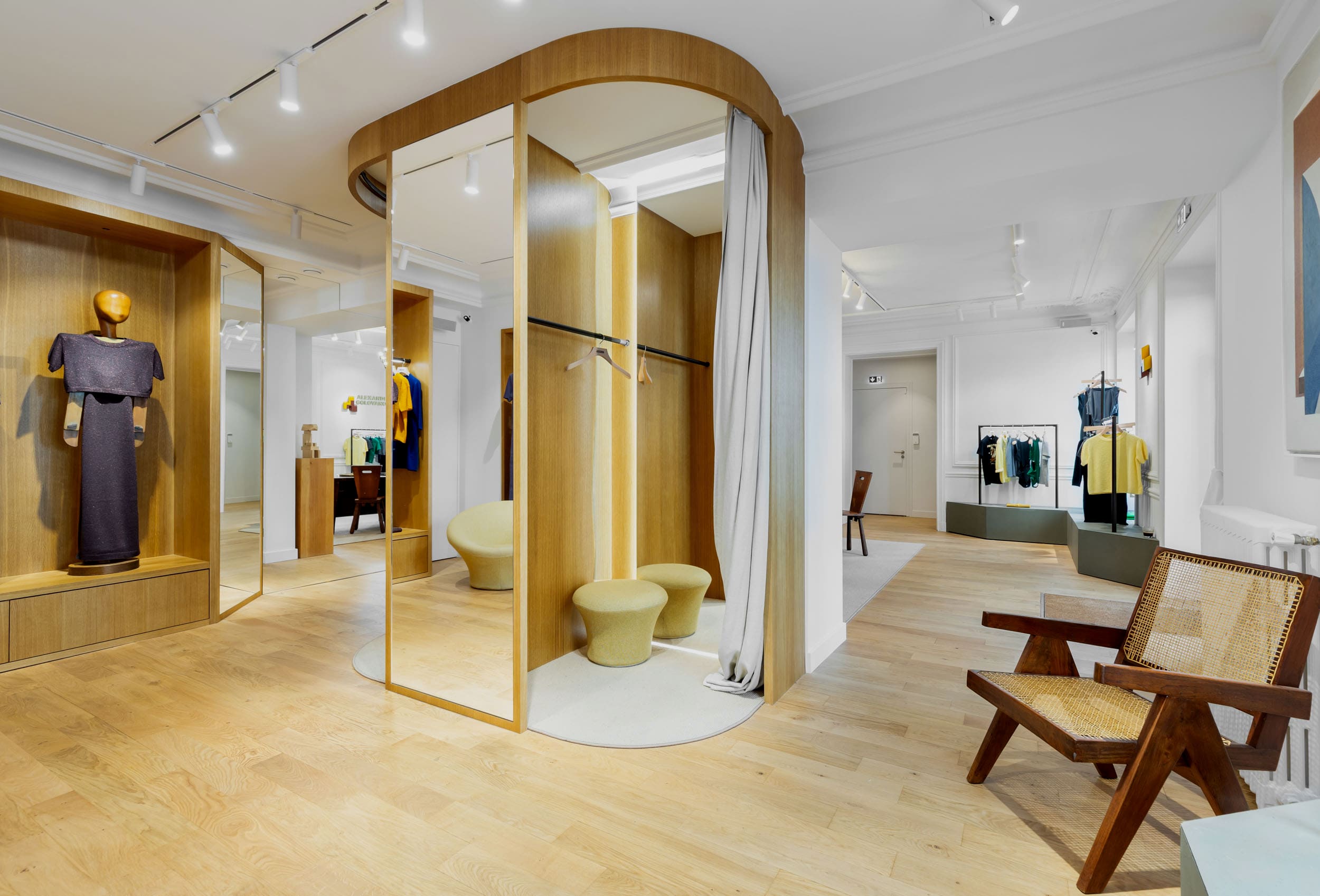 Entre mode, design et art de vivre : la boutique accueille également une sélection de pièces de mobilier d’architectes du XXᵉ siècle choisies en collaboration avec Laffanour | Galerie Downtown, ainsi que des œuvres issues de la collection personnelle d’Alexandra. Cette hybridation transforme l’adresse en une destination singulière où mode, design et art de vivre se rencontrent.